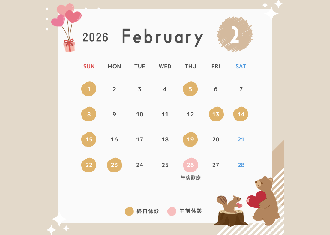 通常診療日・休診日と異なりますが、何卒よろしくお願いいたします。