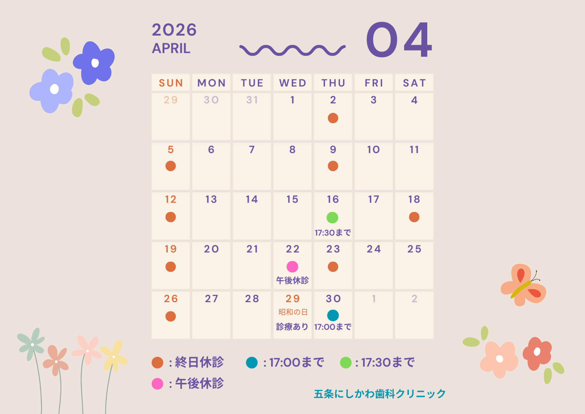 4月の診療日・休診日は以下の通りです。